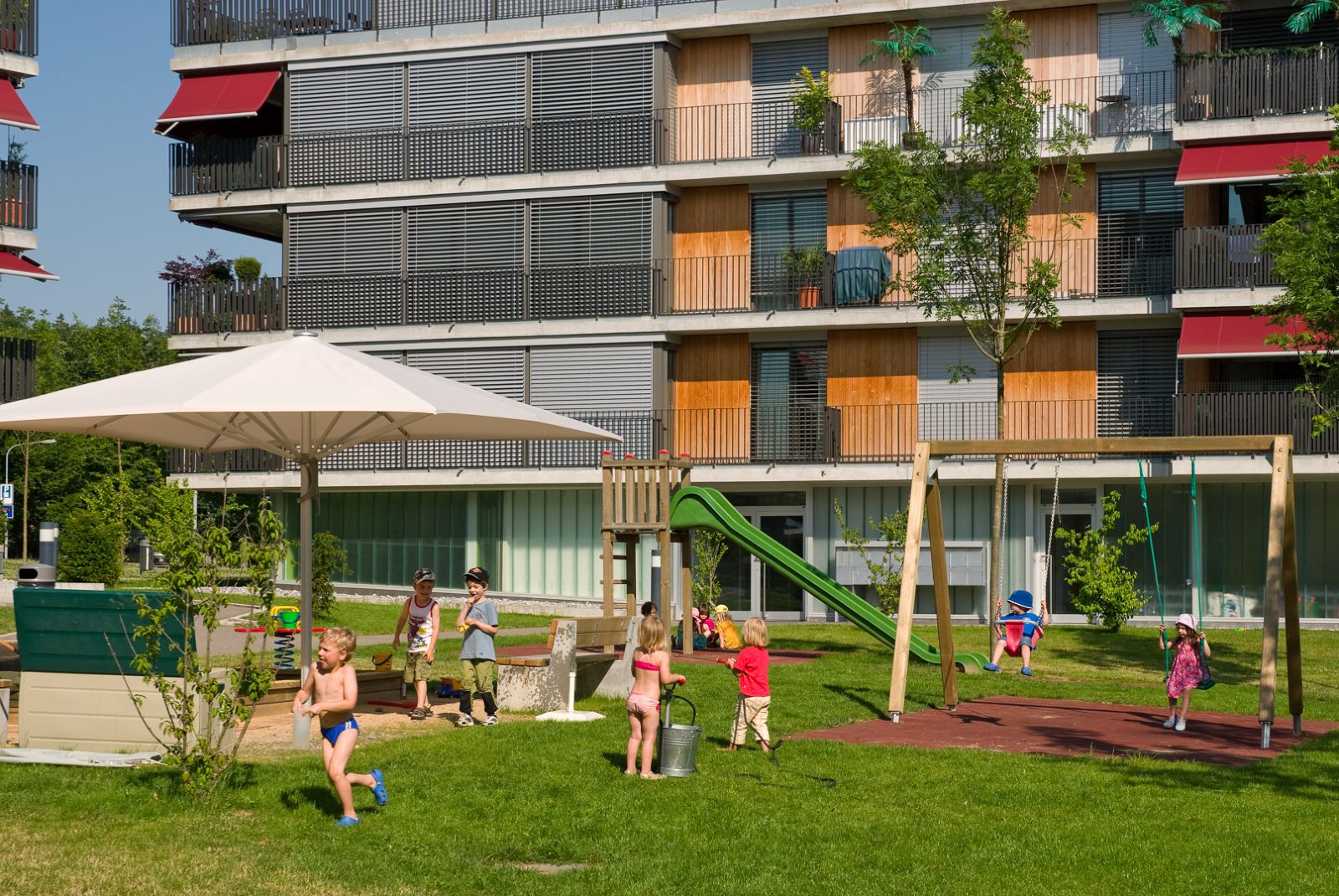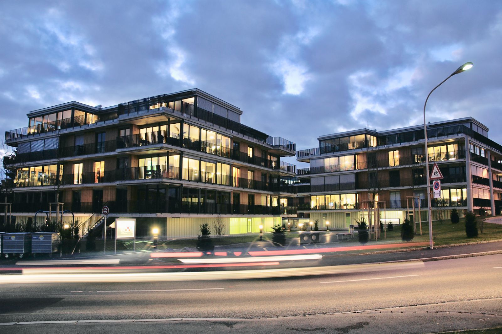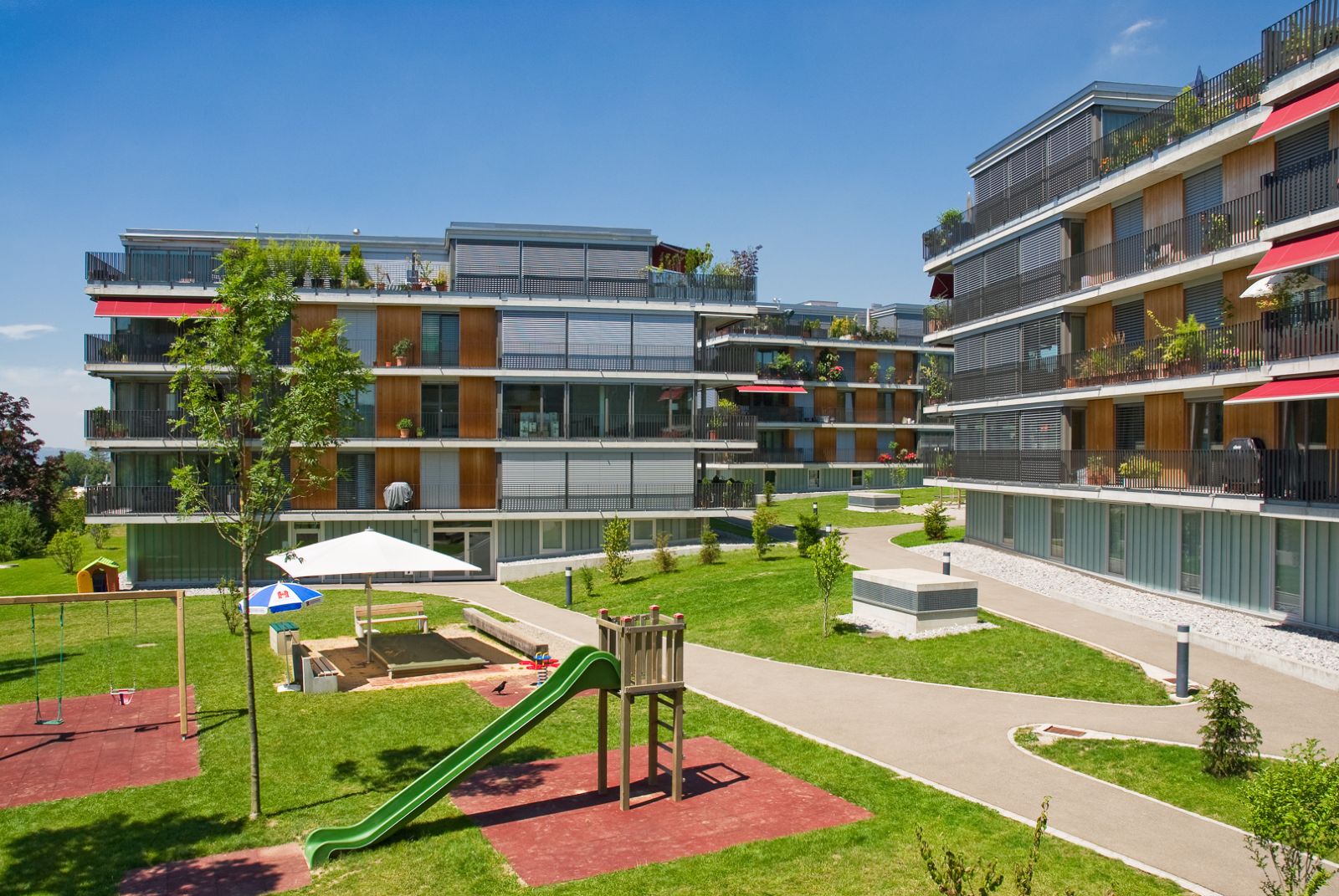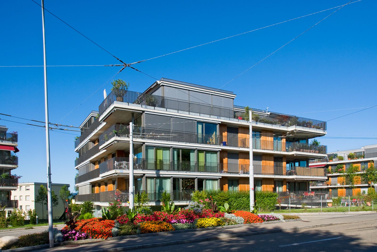 Topmoderne Liegenschaft am Stadtrand von Zürich-Witikon. Vom leicht abfallenden Gelände – auf der Sonnenseite des Zürcher Seebeckens am Rand der Stadt gelegen – eröffnet sich ein weiter Blick auf den See und die Albiskette.