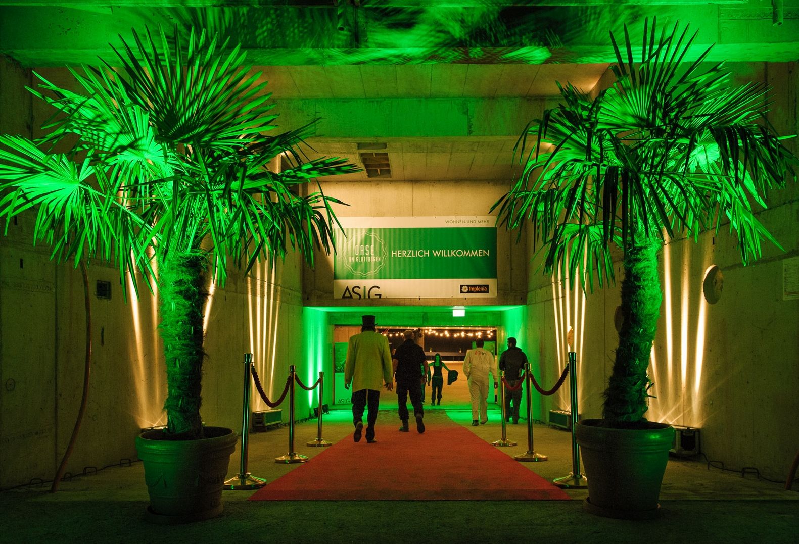 Tiefgaragen sind an sich ungastliche Orte. Doch die Tiefgarage unter dem Haus C Am Glattbogen war an diesem Abend festlich hergerichtet und in lindgrünes Licht getaucht. Die feierliche Zusammenkunft nach Vollendung eines Rohbaus sei ein alter schöner Brauch, betonte ASIG-Präsident Walter Oertle bei der Begrüssung der anwesenden Handwerker. Bauherr, Architekt und Handwerker würden diesen Anlass schon seit Urzeiten feiern, der eigentlich vor allem als Dank an die Handwerker gedacht sei. Früher habe die Aufrichte sogar einen Teil des Lohns gebildet, den der Bauherr den Bauhandwerkern entrichtet habe.