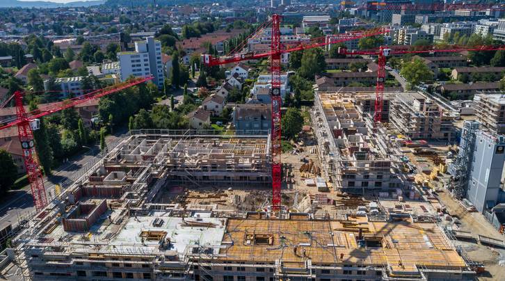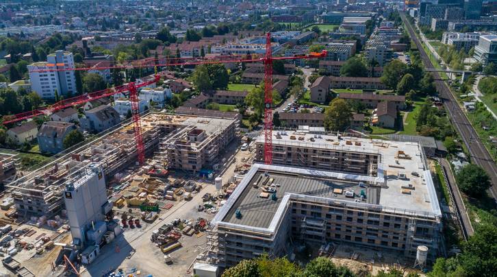 Entlang der Wallisellenstrasse schiesst der ASIG-Neubau ohne Unterbruch weiter in die Höhe.