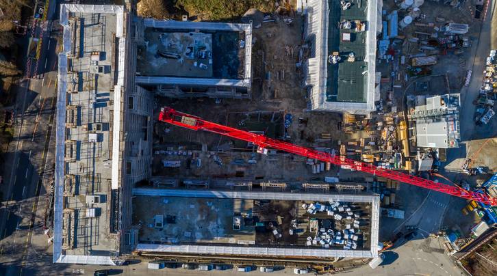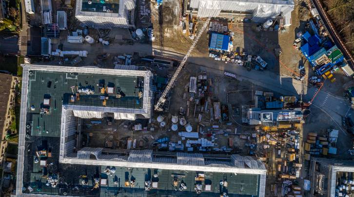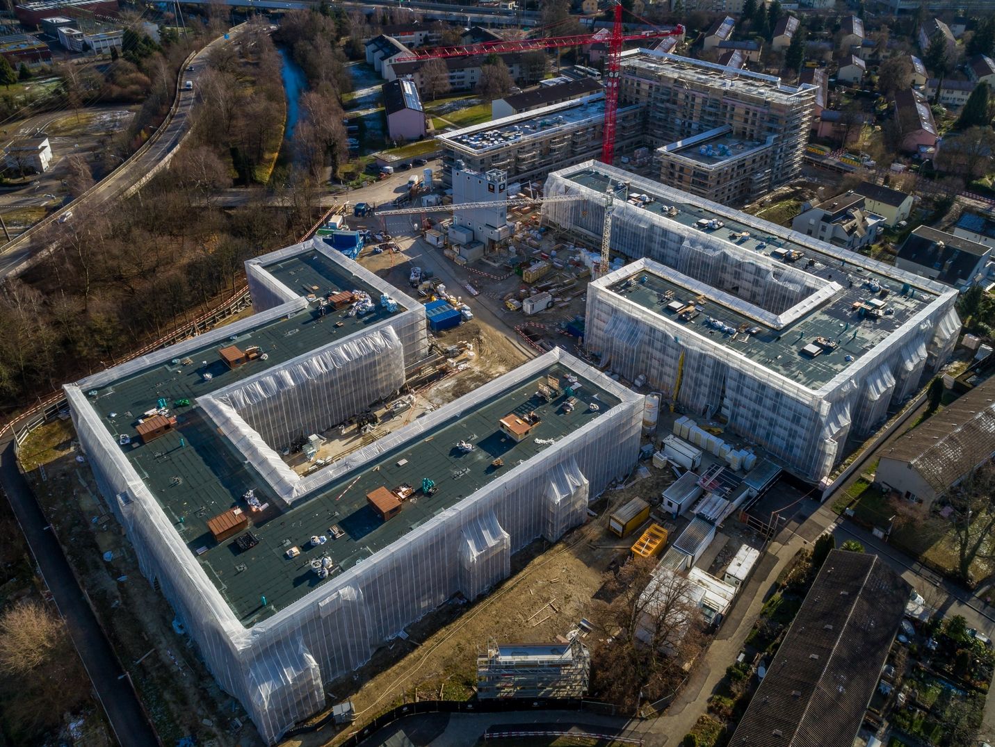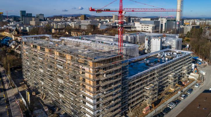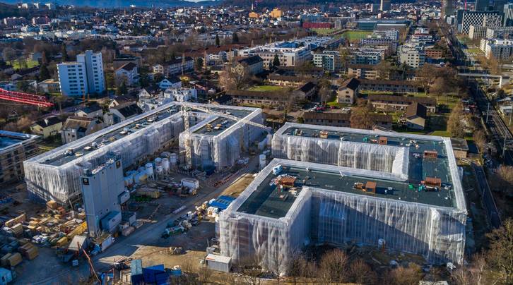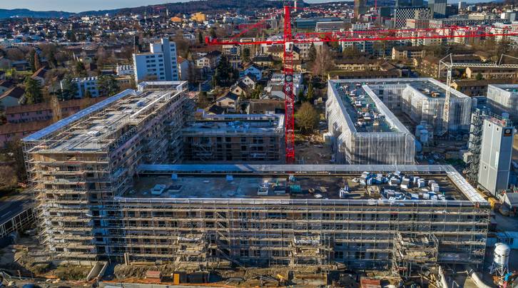Von aussen nicht mehr sichtbar wird weiter fleissig an den drei Gebäuden gearbeitet. Auf der ASIG-Baustelle Am Glattbogen zieht der Baumeister seine restliche Infrastruktur ab und die Logistik wird angepasst.