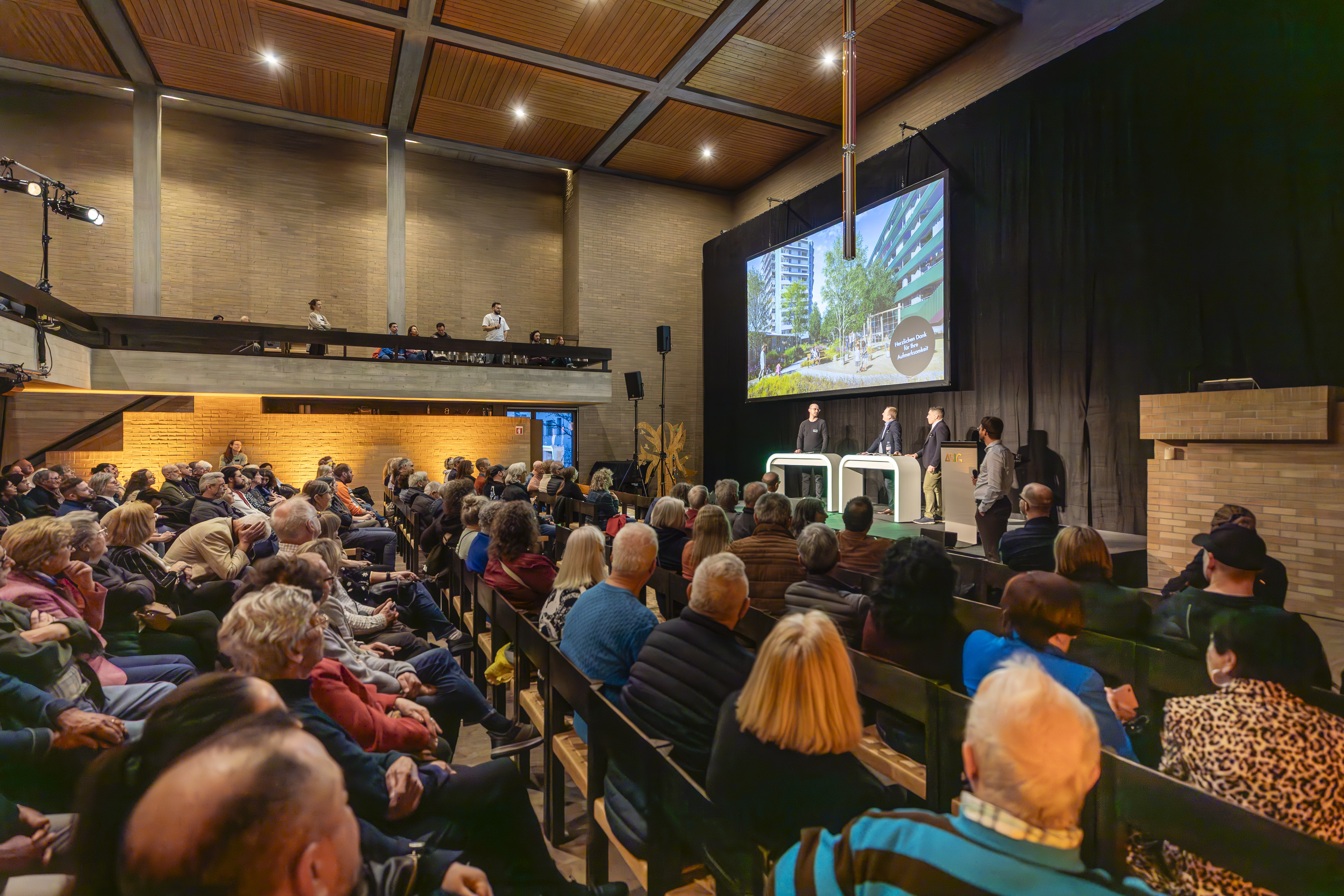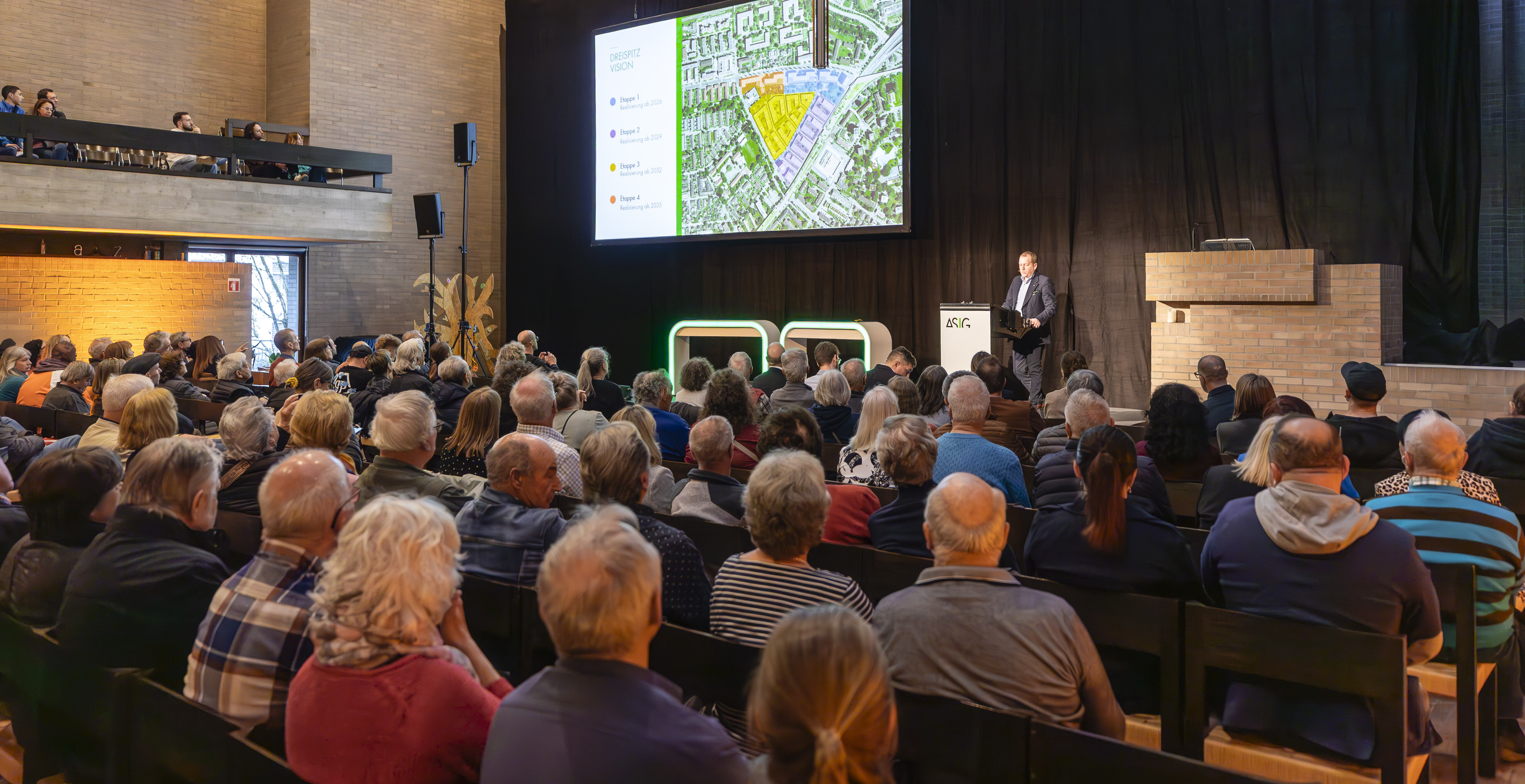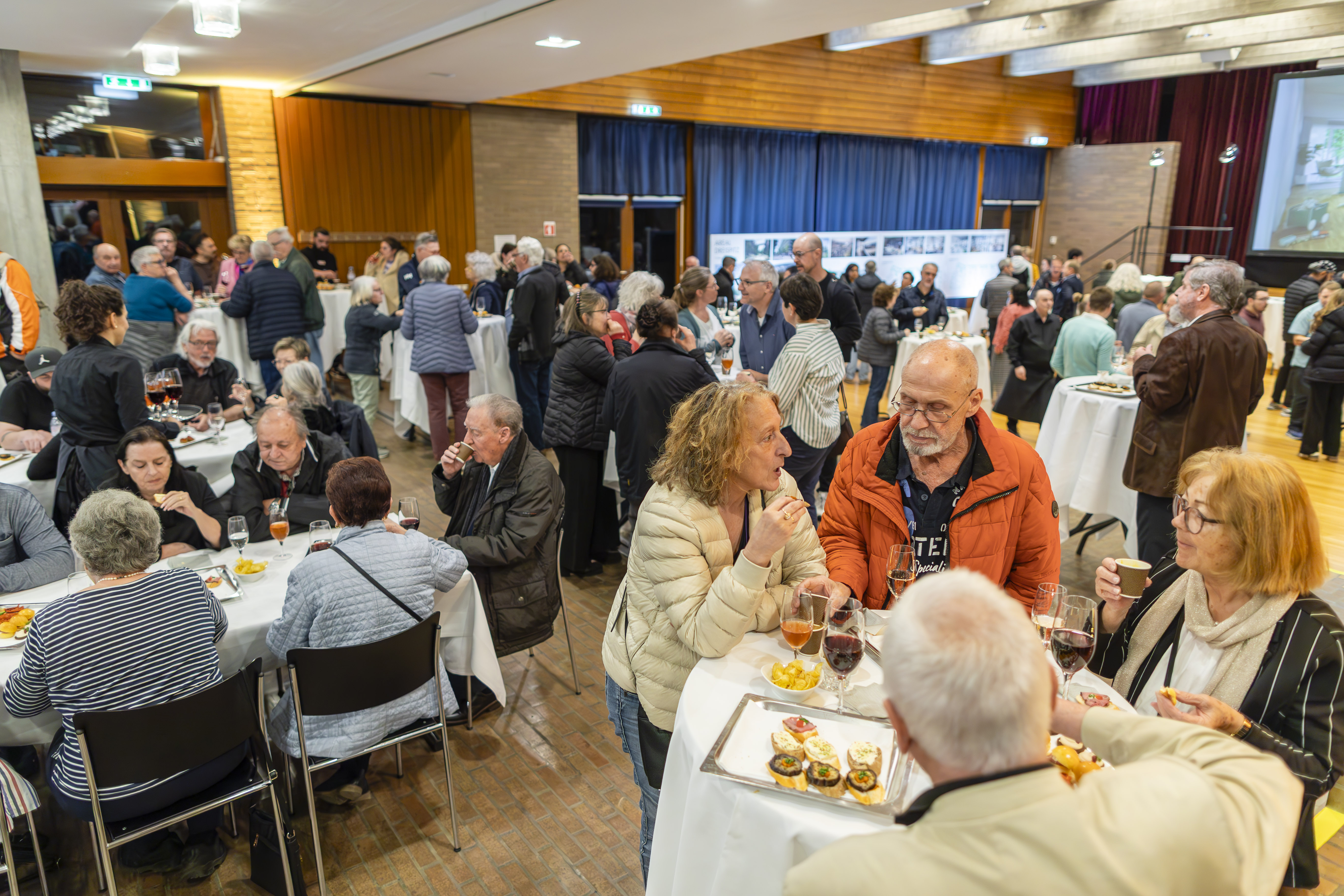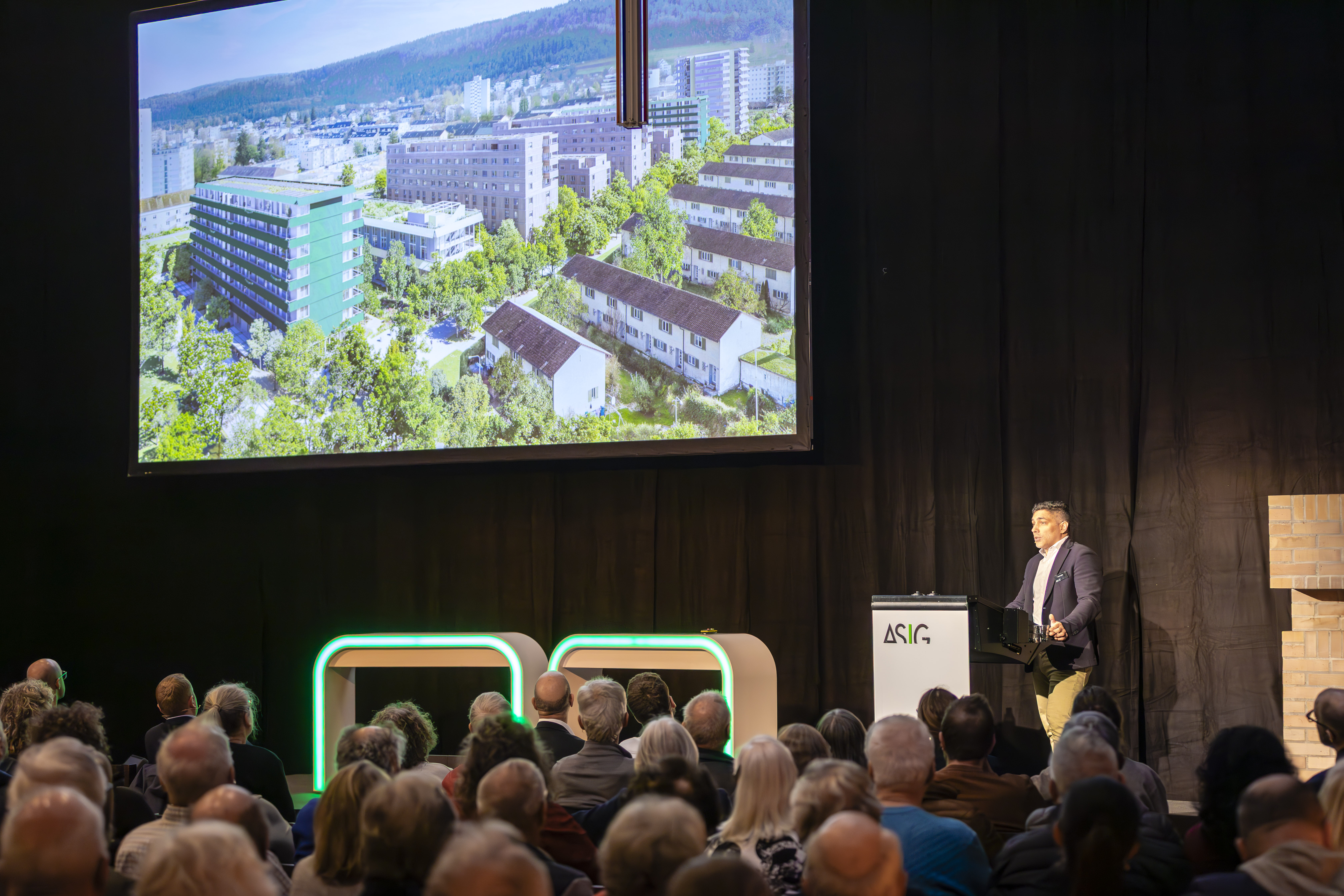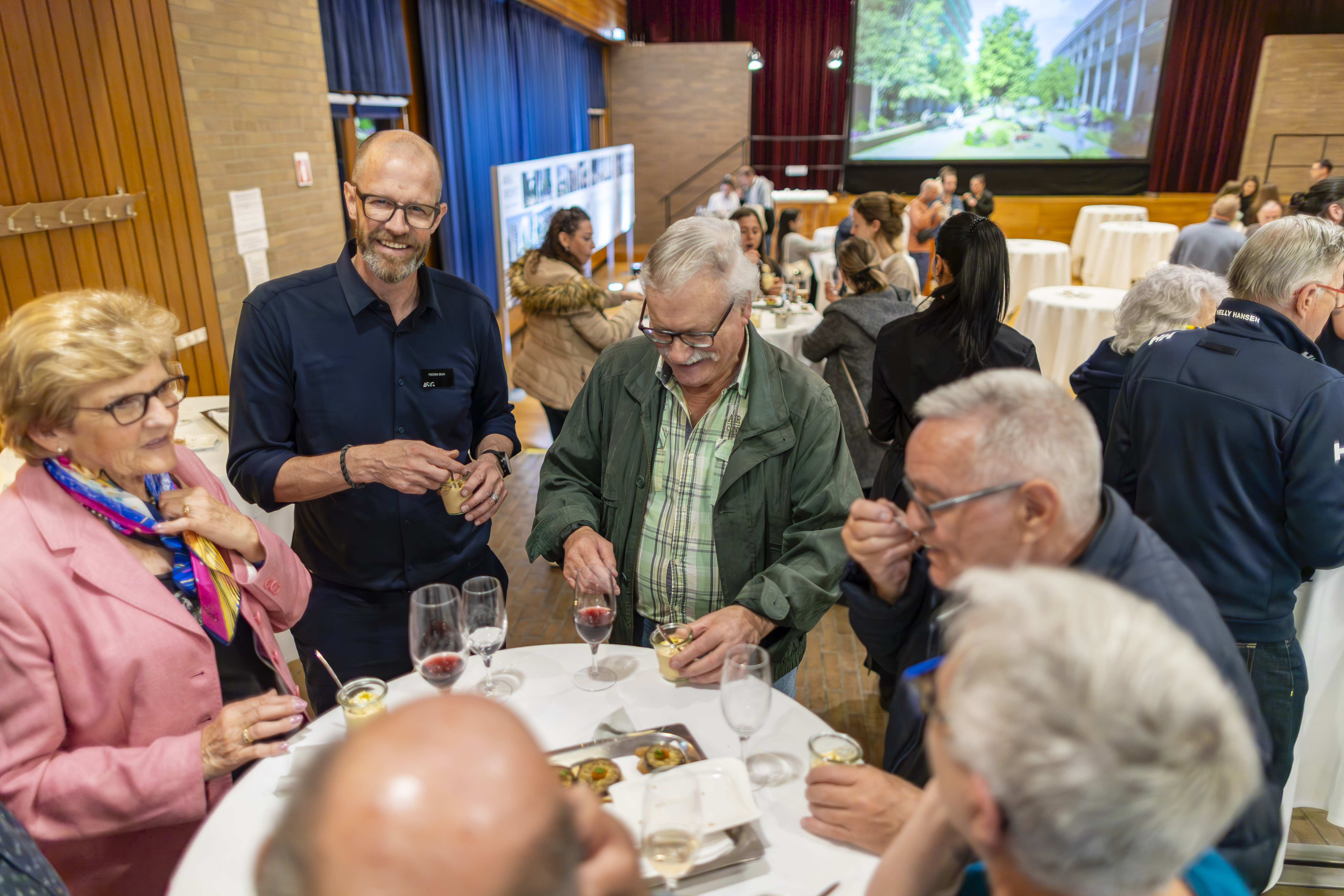 In der anschliessenden Fragerunde sowie beim Apéro am Gipsmodell und bei den Projektplänen konnten die Anwesenden ihre Fragen mit den Projektverantwortlichen der ASIG klären. Die vielen begeisterten Rückmeldungen und die spürbare Vorfreude auf die neue Siedlung sorgten für angeregte Gespräche beim Apéro riche.
