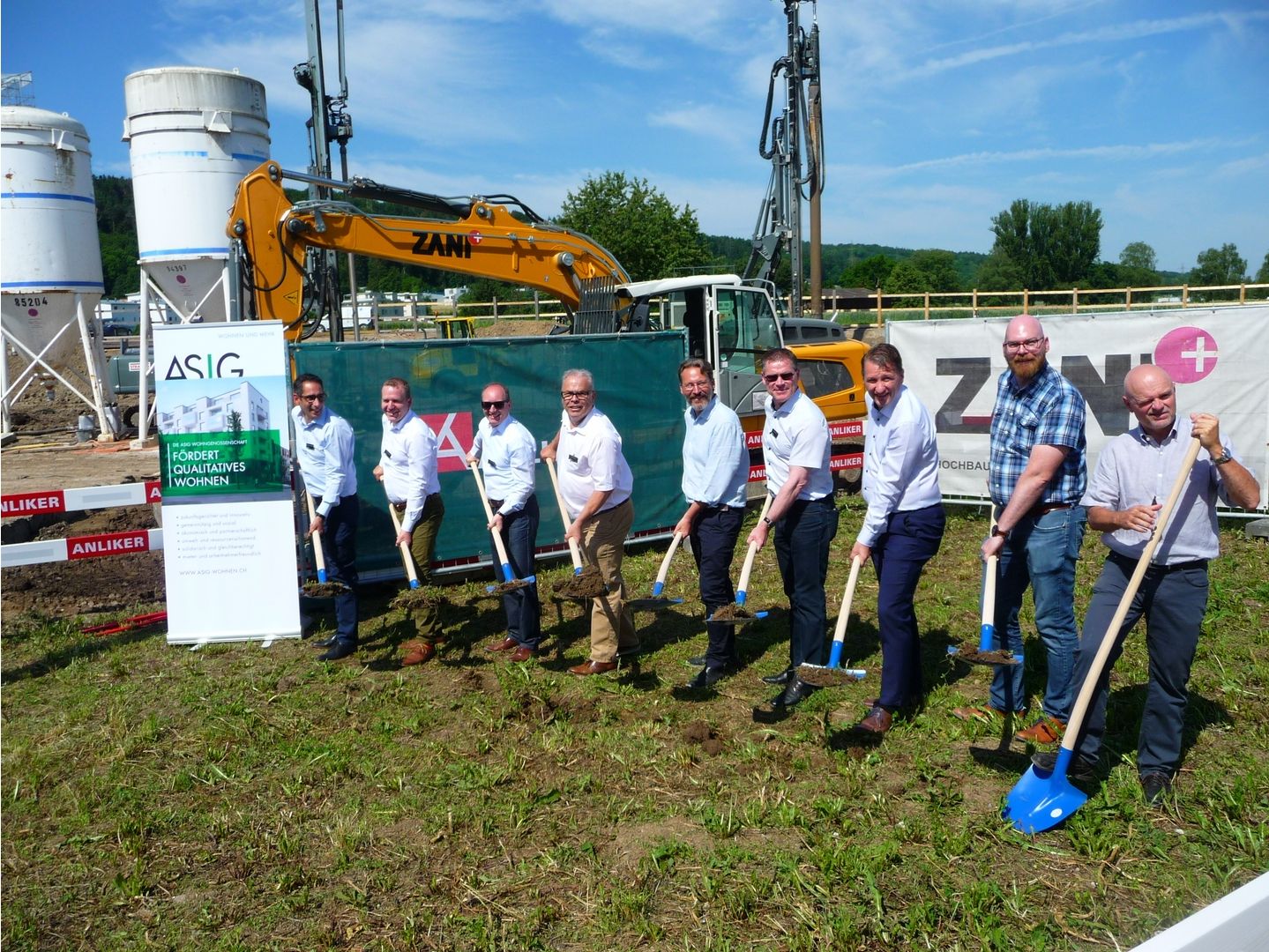 Nach einer intensiven Planungs-, Bewilligungs- und Bauvorbereitungsphase ist die erste Genossenschaftssiedlung der ASIG in Fällanden zum Greifen nah. Der Baubeginn für die drei Häuser mit insgesamt 77 Wohnungen ist erfolgt. Am Mittwoch, 19. Juni 2019, wurde u.a. zusammen mit Vertretern der Gemeinde Fällanden, den Grundstücksnachbarn, den ehemaligen Eigentümern, mit der Firma Anliker AG sowie Mitgliedern aus dem ASIG-Vorstand sowie der Geschäftsstelle Spatenstich gefeiert.