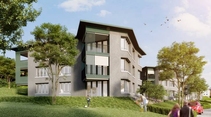 Die vier Punkthäuser schmiegen sich wie selbstverständlich an den Langäri-Hang und bieten mehrheitlich 3.5- und 4.5-Zimmer-Wohnungen mit viel Privatsphäre und optimal dimensionierten Grundrissen – insbesondere für Mehrpersonenhaushalte. Das Bauland befindet sich bereits im Besitz der ASIG. Am 24. Mai 2019 hat die ASIG-Generalversammlung den Kreditantrag bewilligt. Der Baubeginn ist auf Frühling 2020 vorgesehen.