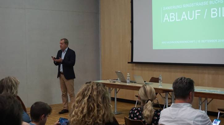 Im kommenden Jahr erneuert die ASIG ihre Siedlung an der Ringstrasse 7-21 in Buchs. Die 62 Wohnungen aus dem Jahr 1987 werden zwischen Februar und Oktober 2020 saniert. Das mit der WSS Architekten AG erarbeitete Sanierungsprogramm wurde am Donnerstag, 19. September, im Gemeindesaal Buchs, vorgestellt. Michael Malnati, Projektreferent und ASIG-Vorstandsmitglied, begrüsste die zahlreich erschienen Interessierten. Über die Sanierungstiefe, Grundrissanpassungen, Abläufe und Termine informierte Dominique Muff, Leiter Bau & Entwicklung, während ASIG-Geschäftsführer Reto Betschart die Mieter-Entschädigungen und Auswirkungen auf die Mietzinse erläuterte. Viele Fragen konnten vor Ort geklärt werden, sodass sich alle Betroffenen in ihrem privaten und nachbarschaftlichen Umfeld rechtzeitig auf die Umbauphase vorbereiten können.