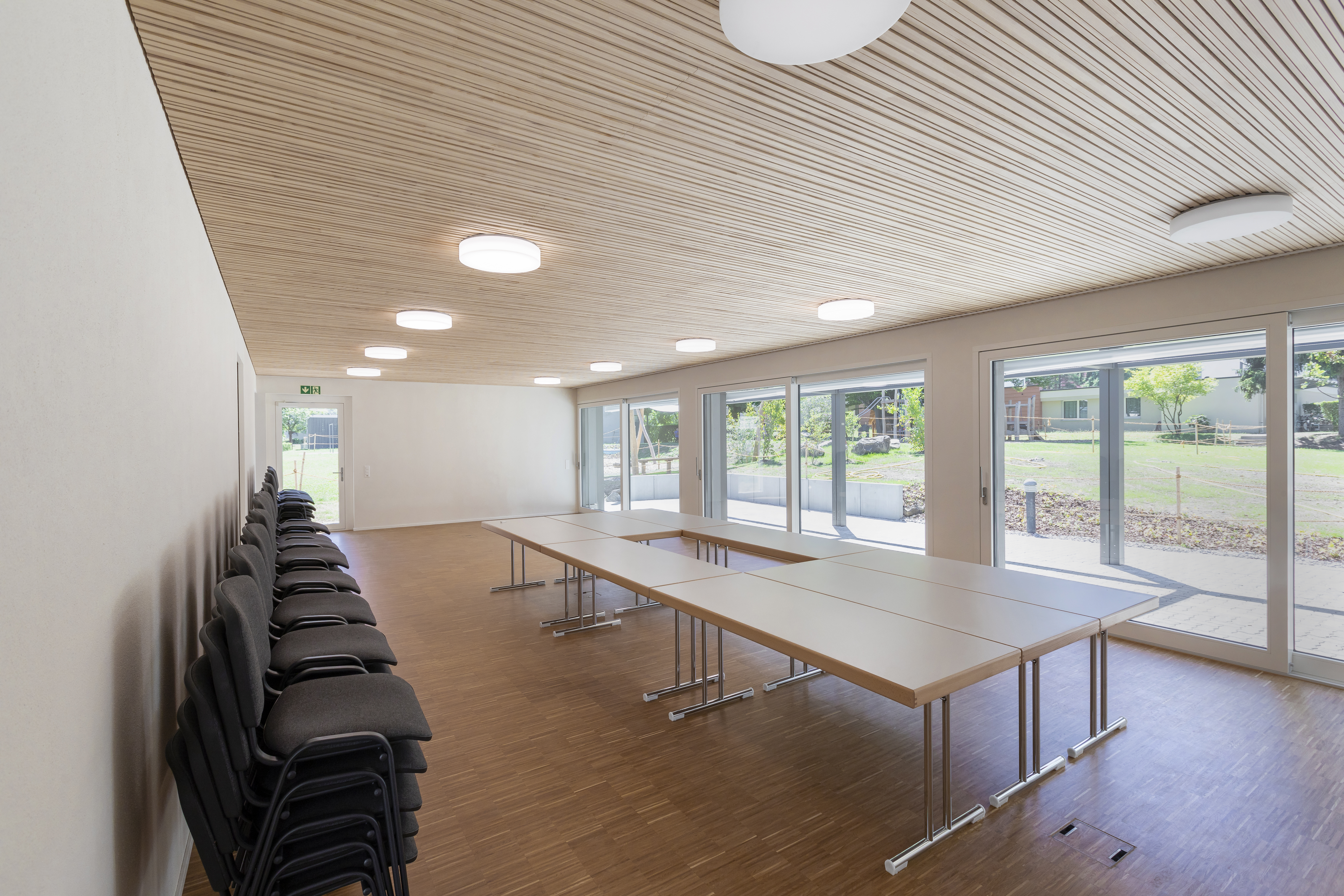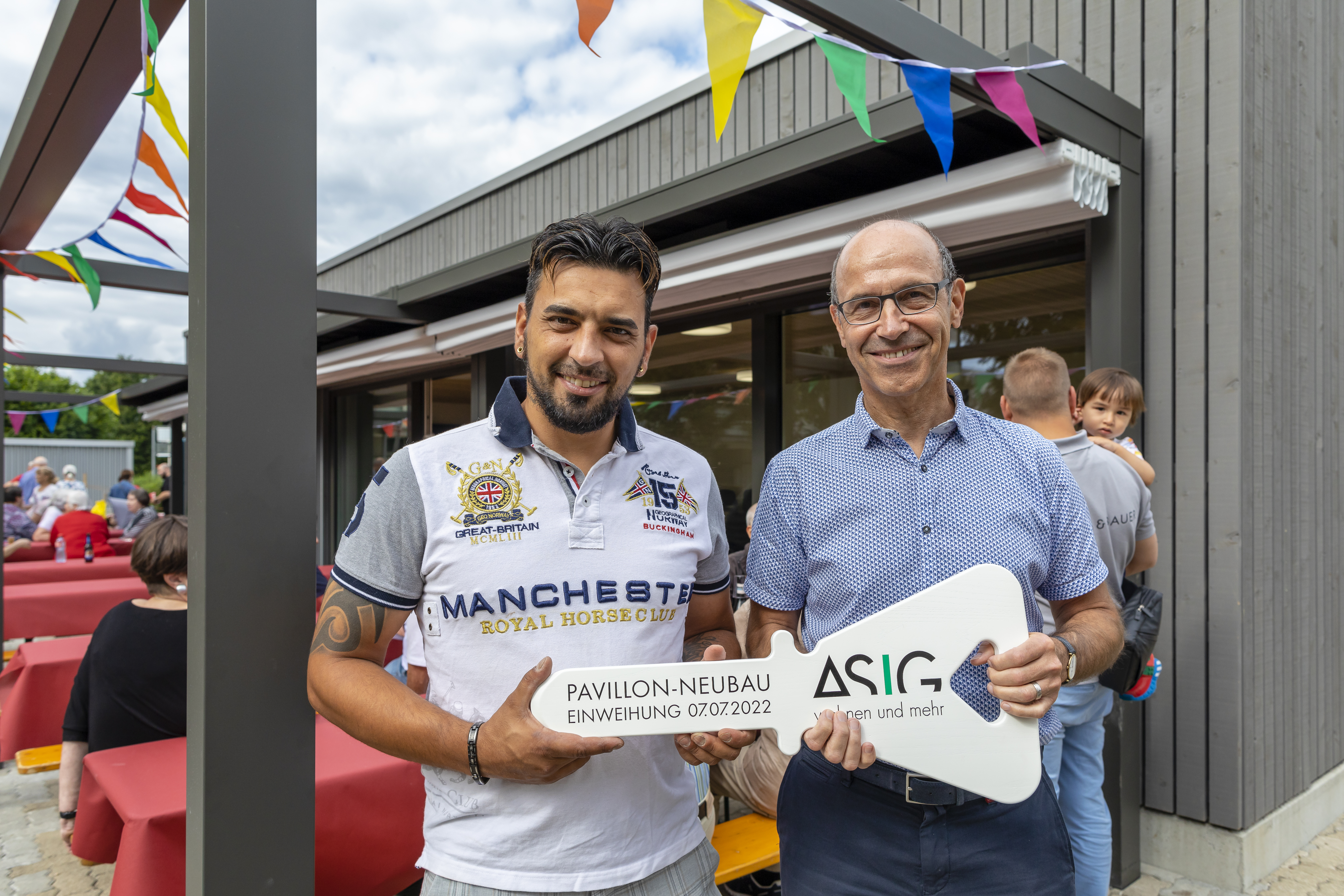 Der helle und voll ausgestattete Raum mit Holz-Akustikdecke und modernster Technik, das grosszügige Entrée mit Garderobe, die modernen Nasszellen und die hochwertige und farblich ansprechende Gemeinschaftsküche wurden unter die Lupe und mit Begeisterung angenommen. Der Pavillon bietet Platz für bis zu 60 Personen und bildet zusammen mit dem ebenfalls neuen Spielplatz und den beiden neu erstellten Velounterständen einen lebendigen Mittelpunkt in der ASIG-Siedlung Rümlang. Nun gibt es auch hier genügend Platz für Begegnungen unter Nachbarinnen und Nachbarn, für Aktivitäten des Forums sowie für private Feste.