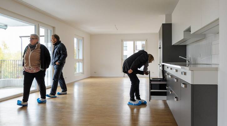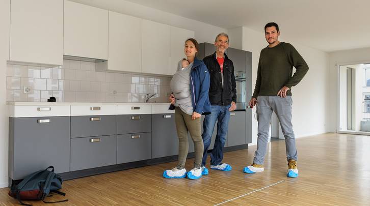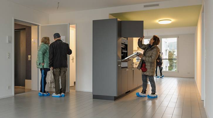 Trotz Regen und Kälte lockte die neue ASIG-Siedlung Am Glattbogen rund 1000 neugierige ASIG-Mitglieder an. Besichtigt werden konnten das neuen Haus E (Glattbogen 120, 128, 132 und 140), das in diesen Dezembertagen bezogen wird, sowie der Doppelkindergarten im Haus D. Diverse Besucher äusserten sich beim Rundgang anerkennend über die Grösse der Wohnungen, etwa die 3.5-Zimmerwohnung mit 90 Quadratmetern. Viele der von NACHBARN befragten Besucher fanden die Miete von Fr. 1709.- (inkl. NK) angesichts der schönen Ausstattung, der guten Geräte oder dem Balkon mit fast 10 Quadratmetern Fläche angemessen. Ein Grund für die moderaten Preise ist der Umstand, dass der ASIG das Land bereits gehörte.