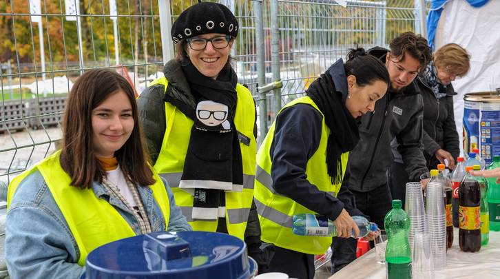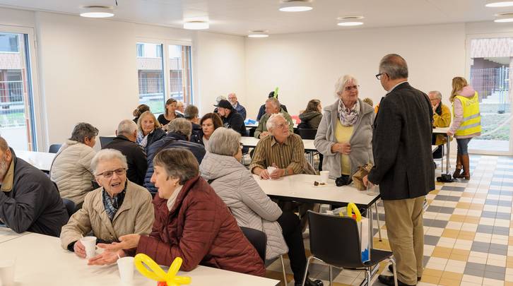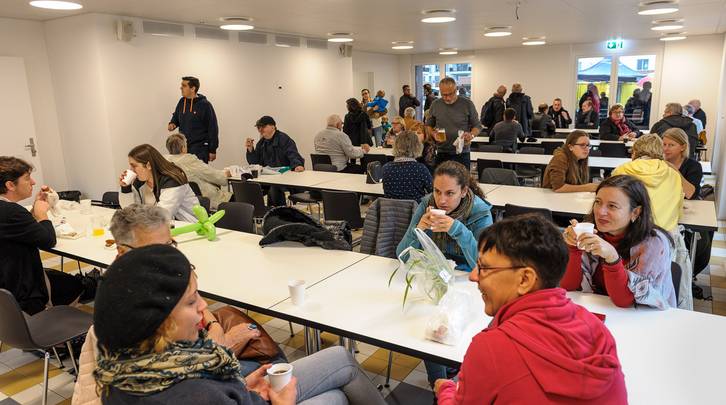Einhellig war der Eindruck, dass der grosszügige Aussenraum, so er denn einmal fertig gestaltet ist, zu einer wirklich Siedlungsoase wird, wo sich die Menschen begegnen können, mit diversen Sitzgelegenheiten, den Velounterständen, den Grüninseln etc. Als wohltuend wurde der Abstand der einzelnen Häuser empfunden, und dass die Häuser nur drei Stockwerke hoch sind (mit Ausnahme von Haus C an der Wallisellensstrasse). Aufwärmen konnte sich die Besucherschar sich entweder im Gemeinschaftsraum oder im Partyzelt. Die ASIG spendiert verschiedene Getränke und eine währschafte Bratwurst.