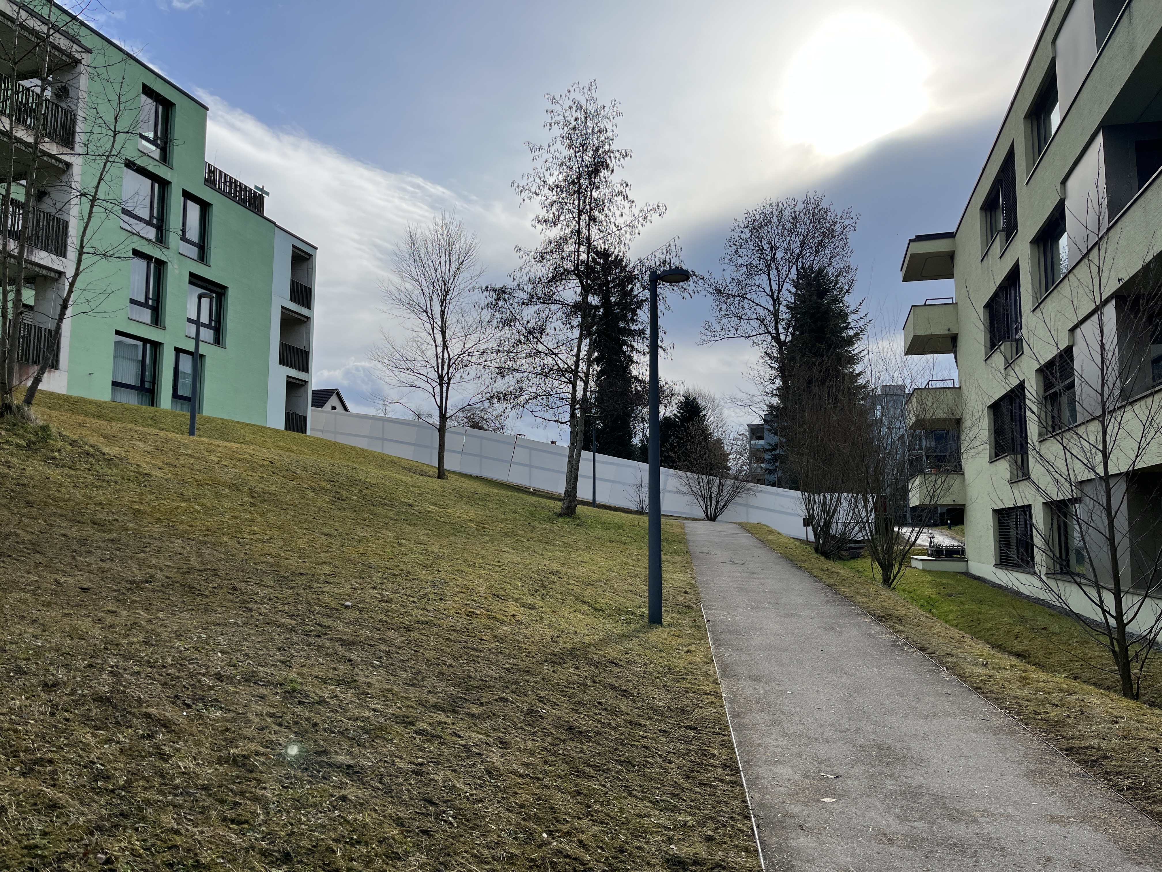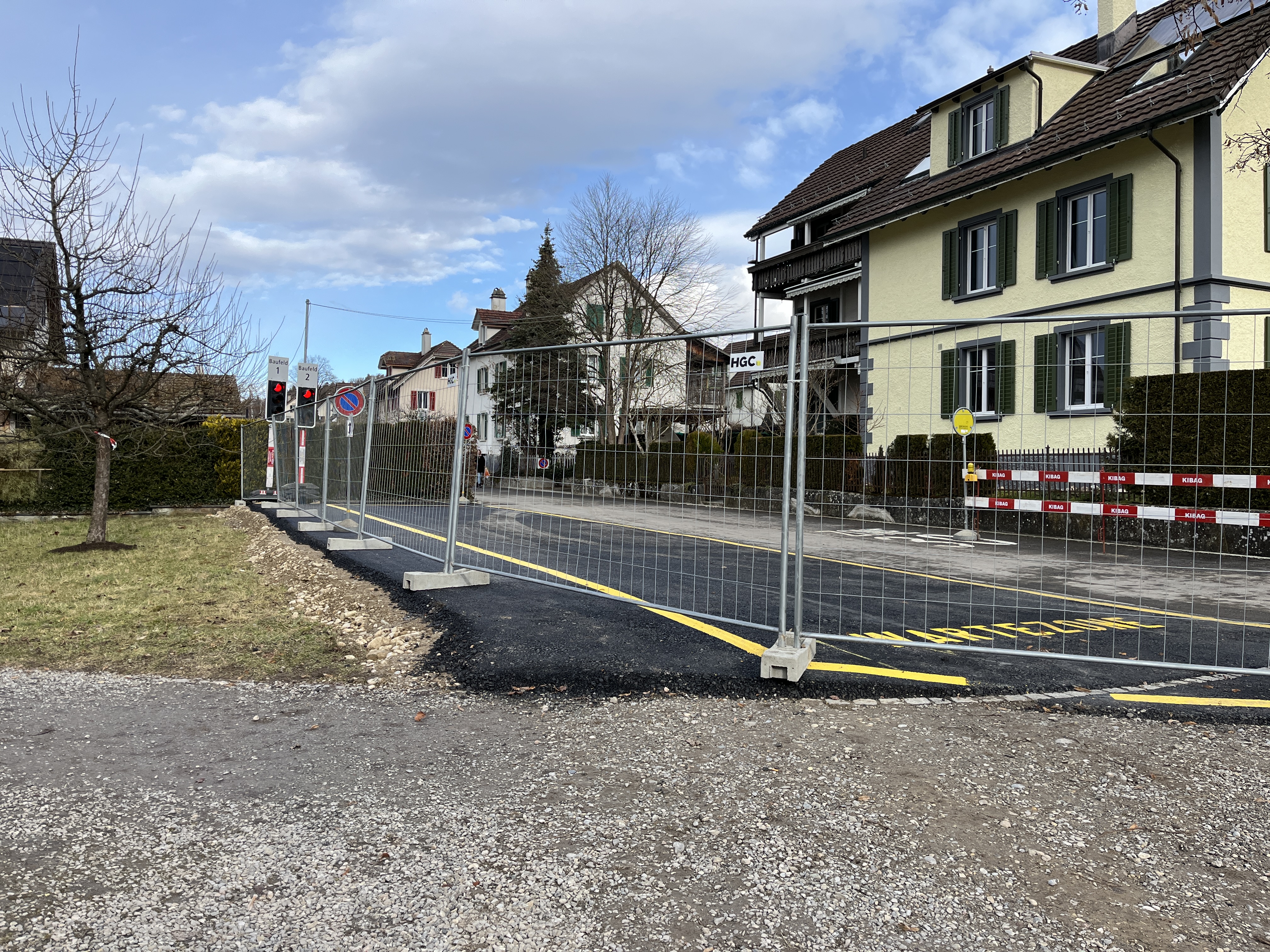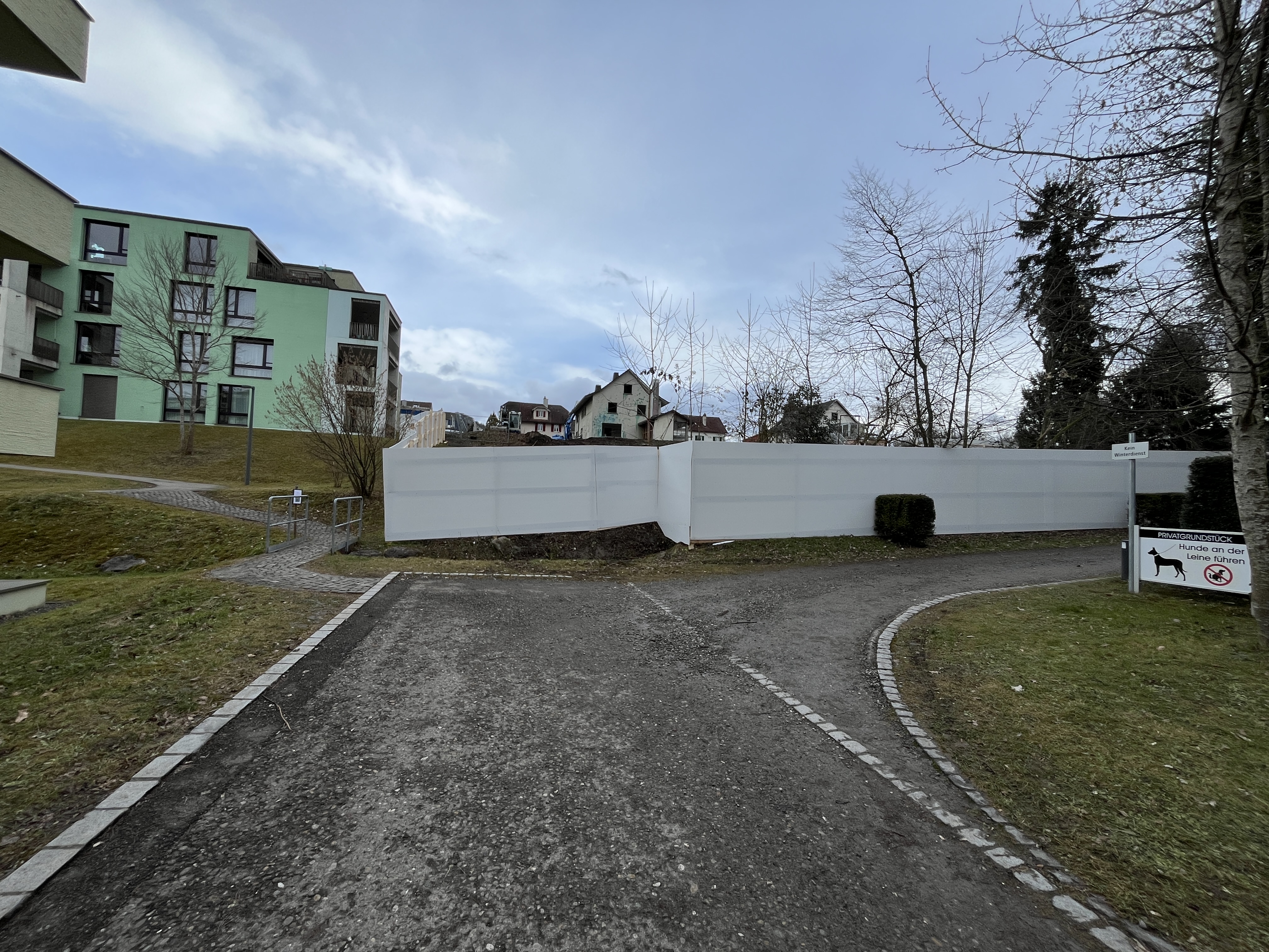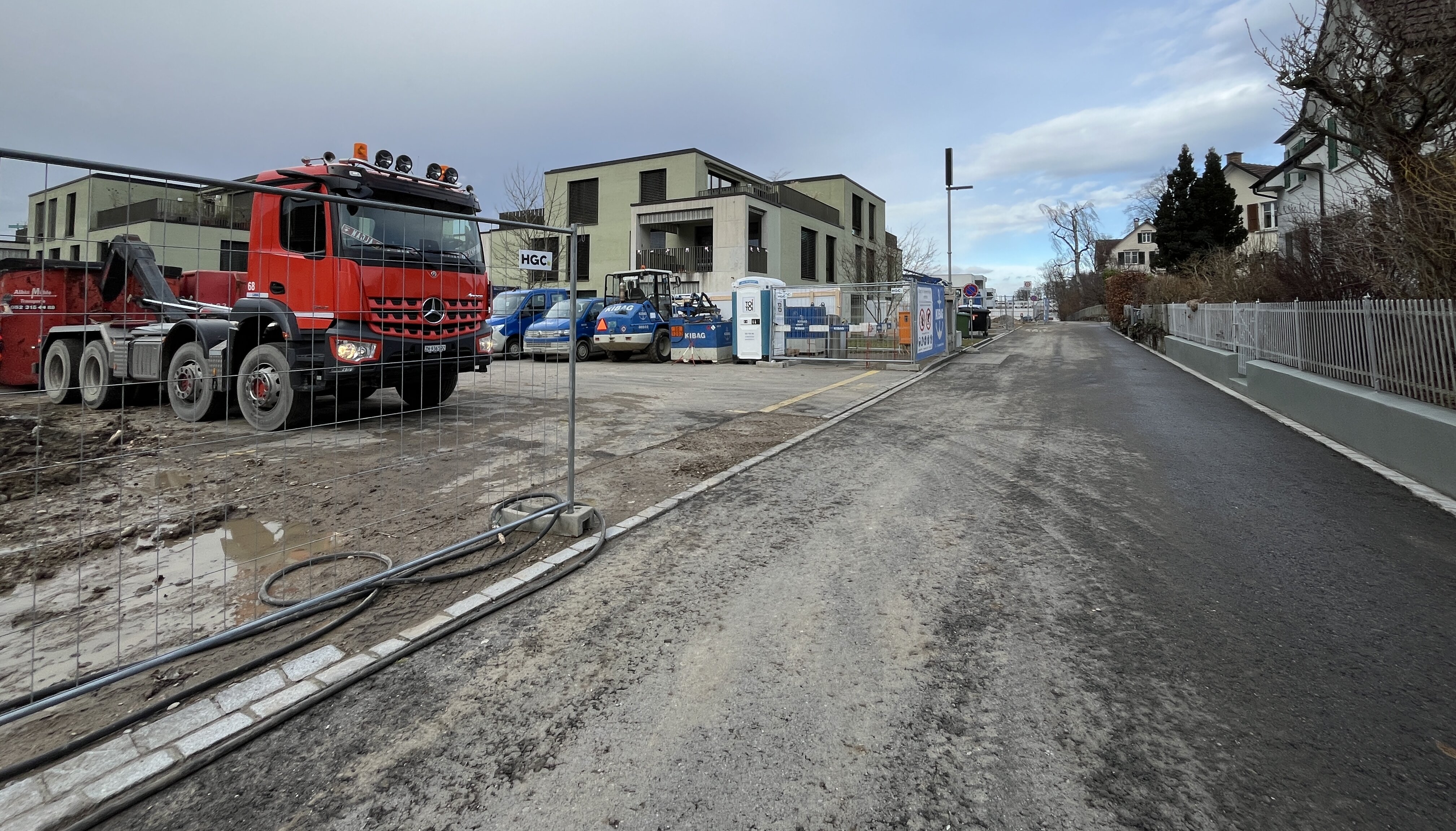 Die Baustellen-Vorbereitungsarbeiten sind inzwischen abgeschlossen. Zufahrt und LKW-Wartebereiche an der Grundstrasse werden nun laufend optimiert. Ziel ist es, für Bewohnende und Nachbarschaft eine möglichst sichere und geordnete Baustellensituation zu gewährleisten.